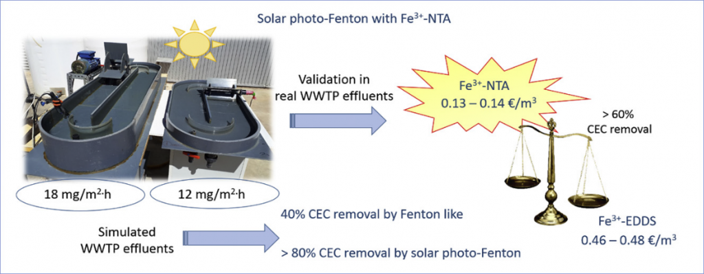 The main contribution of this PhD thesis is the application of one of the most efficient and environmentally sustainable advanced oxidation processes (AOPs), the solar photo-Fenton process, for wastewater treatment at pilot scale. Her study investigated the use of solar photo-Fenton process through scalable and low-cost Raceway Pond Reactor (RPR) to remove contaminants of emerging concern (CECs) from simulated and real urban WWTP secondary effluents at neutral pH.