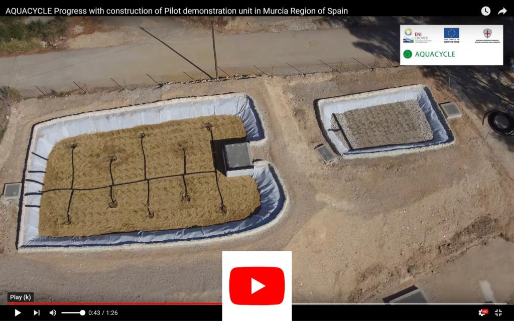 The video clip below documents the completion of the construction of both wetlands, which have been designed to receive the treated effluent of the existing anaerobic digester at the Blanca WWTP. The third and final component of AQUACYCLE's eco-innovative wastewater treatment technology, a raceway pond reactor for solar disinfection, has also been commissioned. The pilot demonstration units will be operated and monitored by the Spanish entities ESAMUR and PSA-CIEMAT in the AQUACYCLE Partnership.