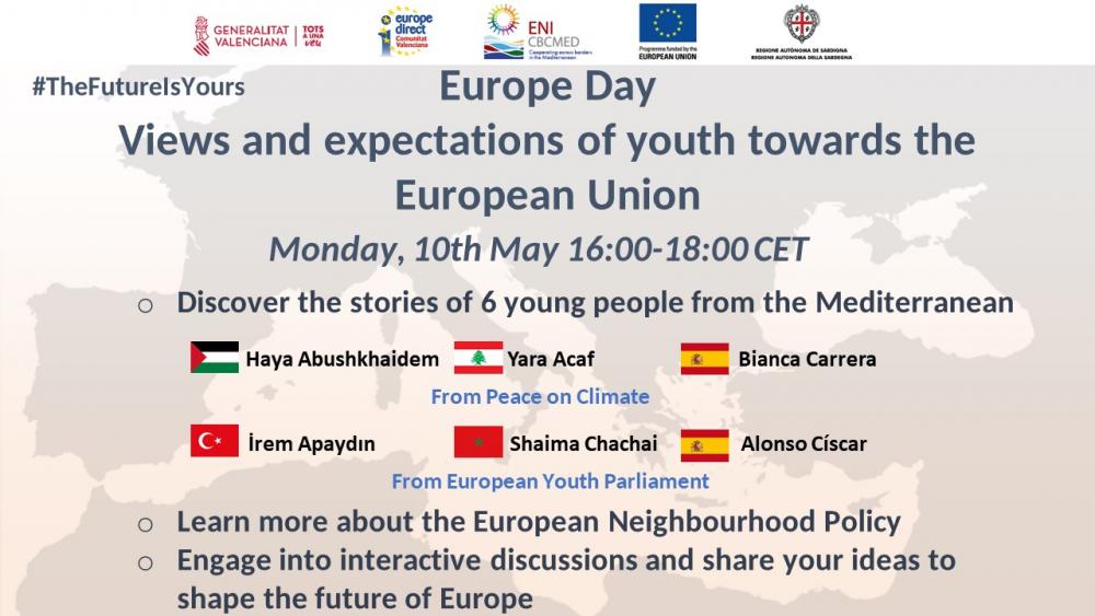 في إطار فعالية عام 2021 ليوم أوروبا وكجزء من مؤتمر مستقبل أوروبا، ينظم برنامج ENI CBC Med وبالتعاون مع Europe Direct Comunitat Valenciana (إسبانيا)، مناقشة عبر الإنترنت بين شباب من جانبي المتوسط.