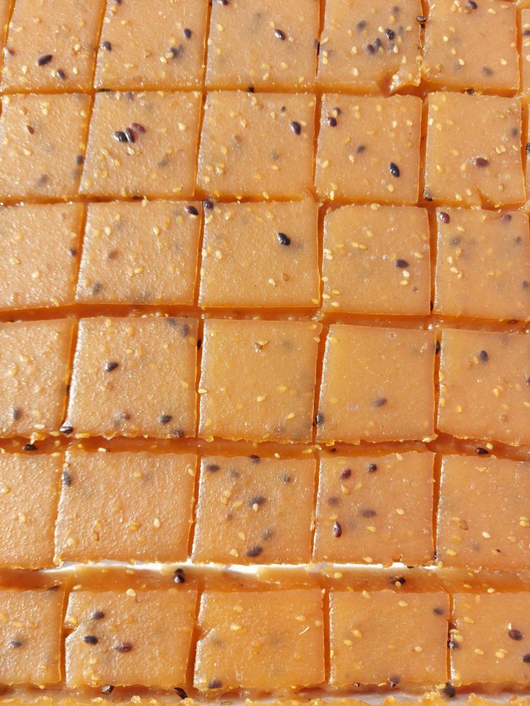 This sweet that can be considered a snack is not quick to make because the paste is laid out thin and flat under the sun until it dries.