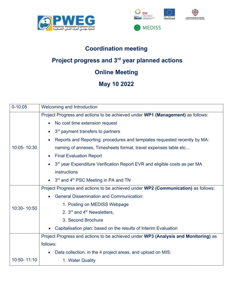The MEDISS partners met on 10 May for a coordination meeting to review progress in the implementation of the pilot projects in the four Countries participating and the planning of activities in the final year of the project.