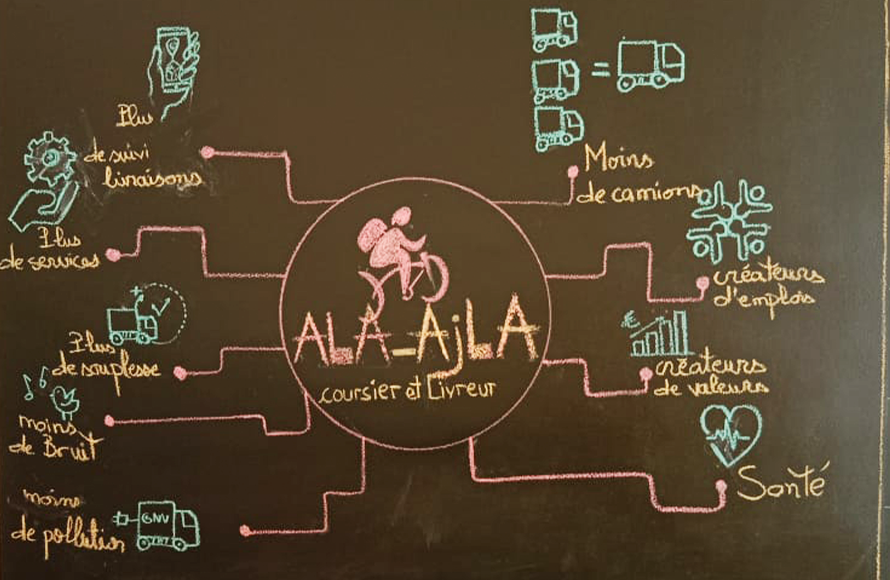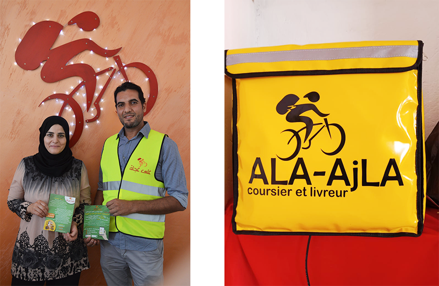 « ALA-AJLA », une métaphore que les tunisiens utilisent pour dire « rapidement »: Anis et Imen ont pensé à cette expression pour intituler leur projet de livraison et de coursier à domicile. Dans la ville tunisienne de Mahdia, la majorité des petits commerçants ne dispose pas d’un service de livraison propre à leurs entreprises. Le rythme de la vie a fait que les citoyens n’ont plus le temps pour faire leurs courses et la structure sociale de la ville a changé faisant que les personnes âgées ne vivent plus avec leurs enfants et donc se trouve en difficulté pour payer leurs factures ou acheter leurs besoins de base d’une manière autonomie. Tous ces facteurs vont devenir par la suite la base de l’idée du projet « ALA-AJLA », avec un engagement écologique des porteurs du projet, le concept est d’apporter de l’aide aux personnes qui ont besoin d’être livrées tout en respectant l’environnement en optant pour des vélos classiques ou électriques.