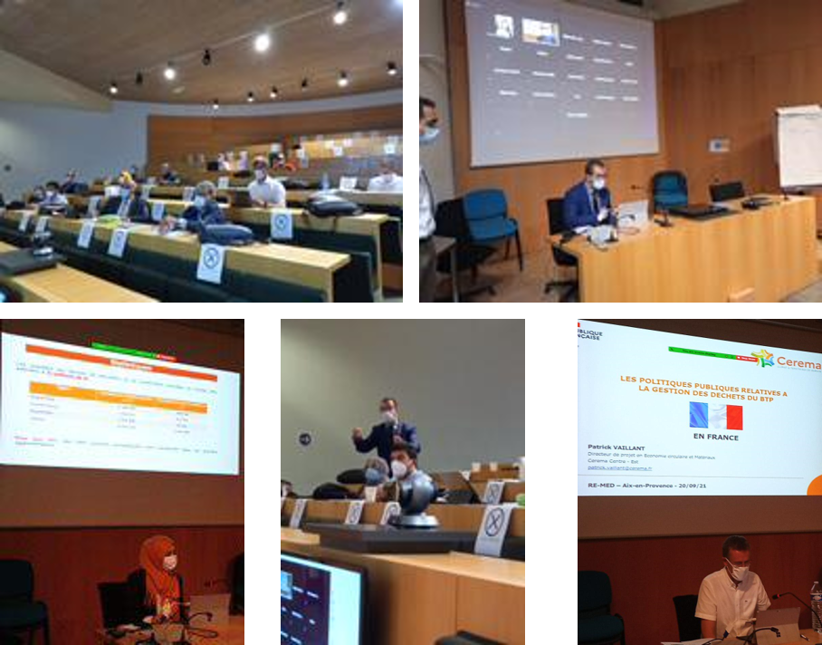 Pendant cet évènement hybride qui a eu lieux du 20 au 22 septembre 2021, 33 partenaires et partenaires associés ont pris connaissance des politiques publiques liées à la gestion des déchets de construction et de démolition issus du BTP et des techniques de construction routière en France, Tunisie, Italie et Liban. Cet échange a permis de partager un référentiel de langage et de connaissance commun sur les contextes locaux réglementaires, normatifs, techniques et opérationnels nécessaires à la réalisation des pilotes du projet RE-MED que sont la construction d'installations de collecte/tri et traitement des déchets inertes issus du BTP en Tunisie et au Liban et la construction d'une section routière expérimentale intégrant ces déchets ainsi recyclés en Tunisie.