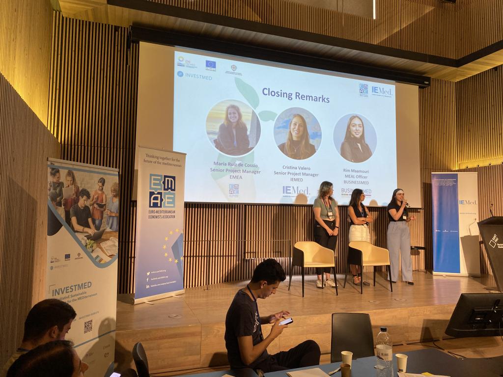 In closing the event, María Ruiz de Cossío, Senior Project Manager at the Euro-Mediterranean Economists Association, Cristina Valero, Senior Project Manager at the European Institute of the Mediterranean, and Rim Maamouri, Monitoring Evaluation Accountability and Learning Officer at BUSINESSMED and INVESTMED Project Manager, thanked all participants for taking part in the event and actively contributing to the sessions.