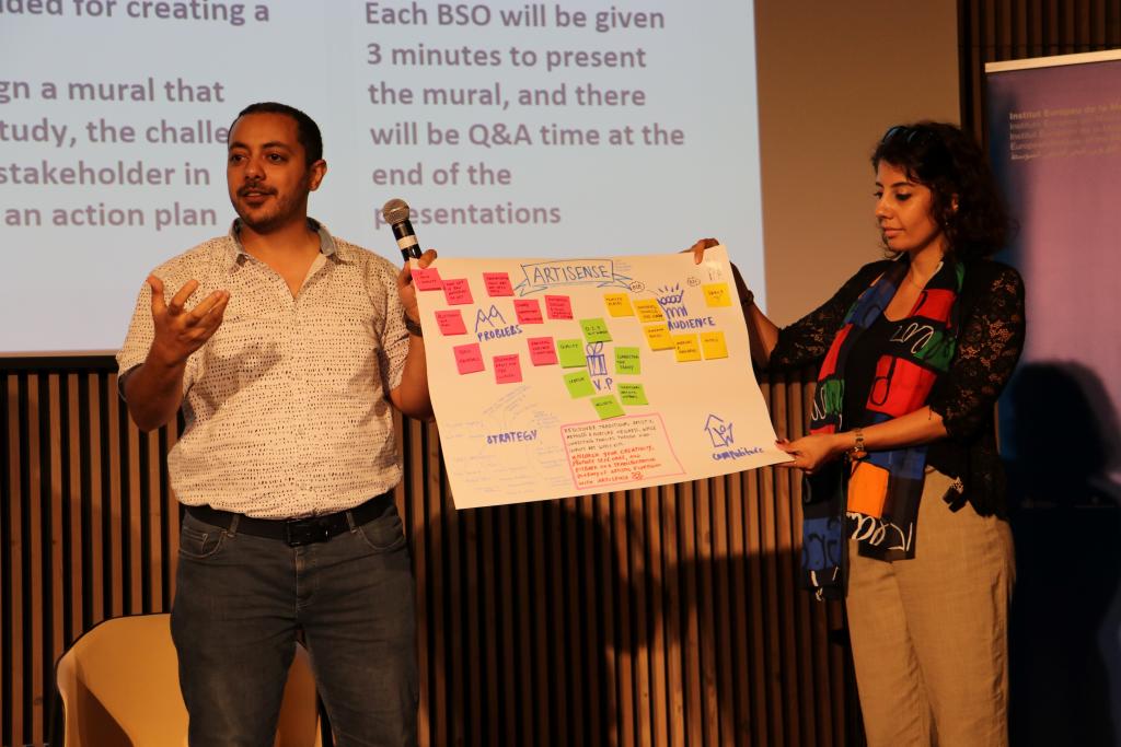 To kick off the interactive sessions, EMEA led the second Advocacy Session of the project, titled: Policy Recommendations to Contribute to an Enabling Environment for MSMEs in the Southern Mediterranean. This policy session engaged with the INVESTMED project beneficiaries on the research done by EMEA and generated a lively discussion on policy recommendations for the region. Prior to the event, EMEA published 5 policy papers covering the Entrepreneurial Ecosystem in the target countries, the Blue, Green and Cultural and Creative Economies, and Social Protection Schemes. In the advocacy session, moderated by Kirsty Fairhurst, Communication Officer of the INVESTMED project and Assistant Project Officer at EMEA, the experts gave an overview of their papers and recommendations to the participants followed by a Q&A session. Finally, Carlo Sessa, Senior Researcher at EMEA, presented his work on the novel concept of the regenerative economy and discussed with the entrepreneurs how to integrate these principles into their own business models.