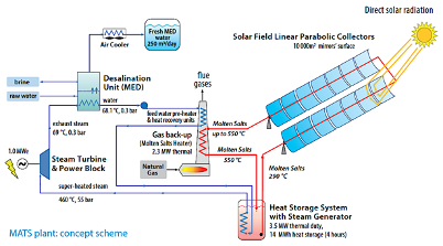 The MATS project “Multipurpose Applications by Thermodynamic Solar”, co-funded by the European Union under the 7th Framework Programme, aims at the development, build and demonstration of a multipurpose facility to produce electrical power and water supply for a community of at least 1000 people in a desert area in Egypt, through the following main steps: