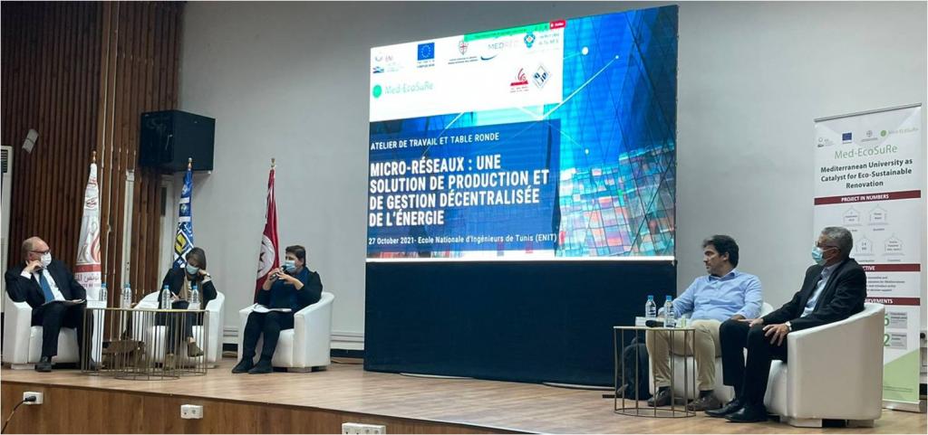 October 27th , 2021, MEDREC (Mediterranean Renewable Energy Centre) and ENIT (National Engineering School of Tunis) convened decision makers, academics and private companies from the Mediterranean, as well as initiatives such as Interreg MED Renewable Energy community and SUNREF (Sustainable Use of Natural Resources and Energy Finance) for a workshop on “Micro-Grids as decentralized energy generation and management solutions."