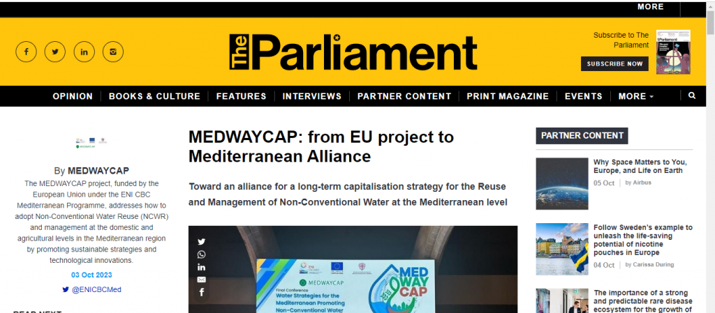 We are also glad to announce that “The Parliament Magazine” has released a comprehensive article on MEDWAYCAP, shedding light on its remarkable achievements. “The Parliament Magazine” is a renowned European publication known for its in-depth coverage of policy matters within the European Union and the broader European region. With a readership that includes policymakers, legislators, and experts, the magazine has become an influential platform for discussing critical issues influencing the continent. The release of this article underscores the significance of the MEDWAYCAP project in the context of European and Mediterranean affairs.