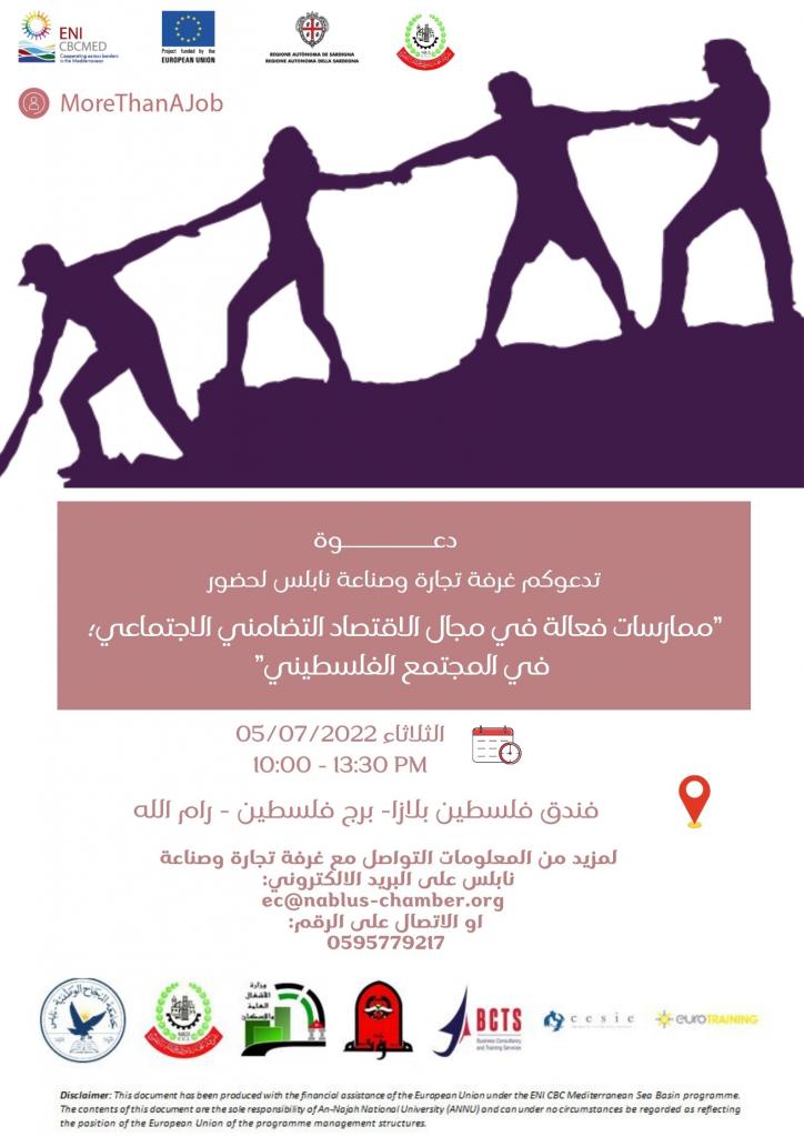 Within the implementation of MoreThanAJob project ; An-Najah National University & the Nablus Chamber of Commerce and Industry have the honour to invite you to attend the workshop entitled