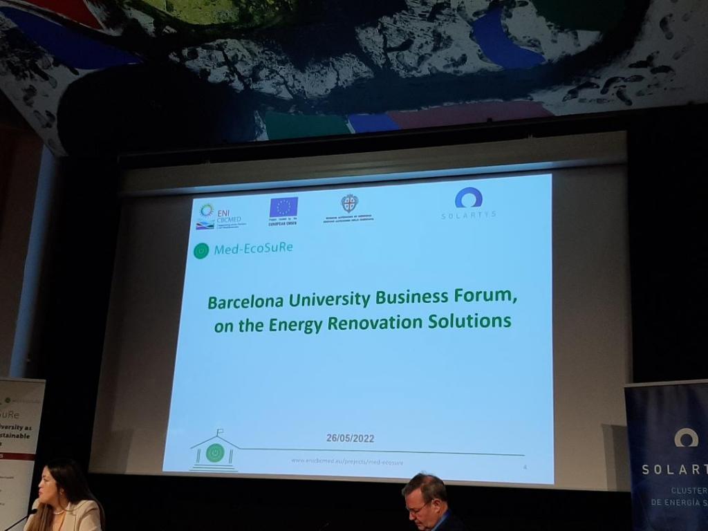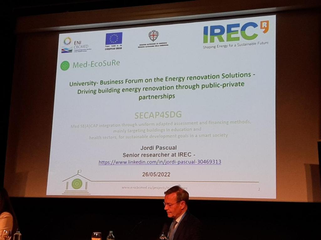 On 26th May 2022, IREC (Instituto de Investigación de la Energía de Cataluña), one of the Spanish partner of SEACAP 4 SDG project, participated to the University Business Forum held in Barcelona (Spain), an event organized by SECARTYS and SOLARTYS within Med-EcoSuRe project, funded under the standard call for proposal of ENI CBCMED Program.