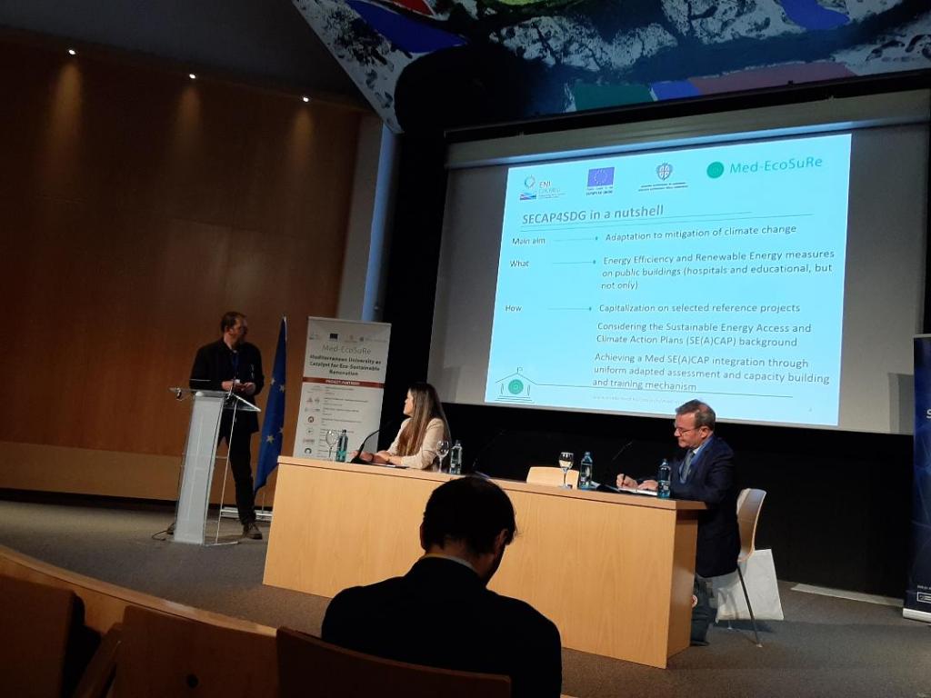 The Forum has been the opportunity to present objectives and activities of SEACAP 4 SDG project, financed within the capitalization call of ENI CBCMED Program which aims to adapt and capitalize some results and innovative tools also from Med-EcoSuRe project, regarding energy efficiency and renewable energy measures in public buildings.