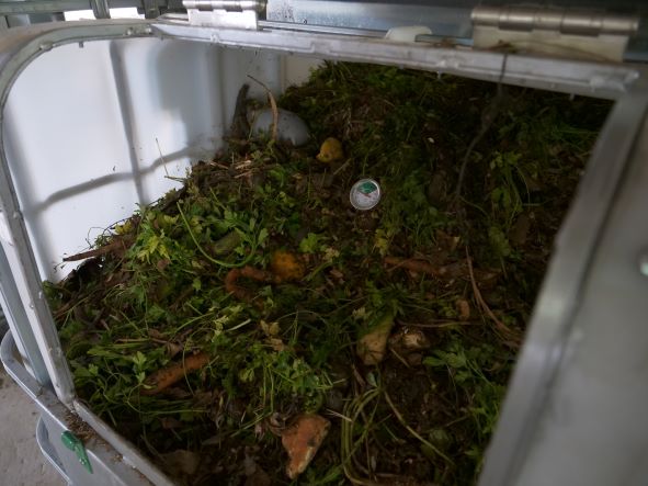 The final step was to put the three mixtures inside three Earth Cube composters and to measure the initial temperature using a thermometer and estimate the moisture based on the hand-squeeze test. The trainees were then instructed on how to manage and monitor the composting systems and four volunteered to perform routine visits to follow up on all the three mixes in collaboration with the trainer.