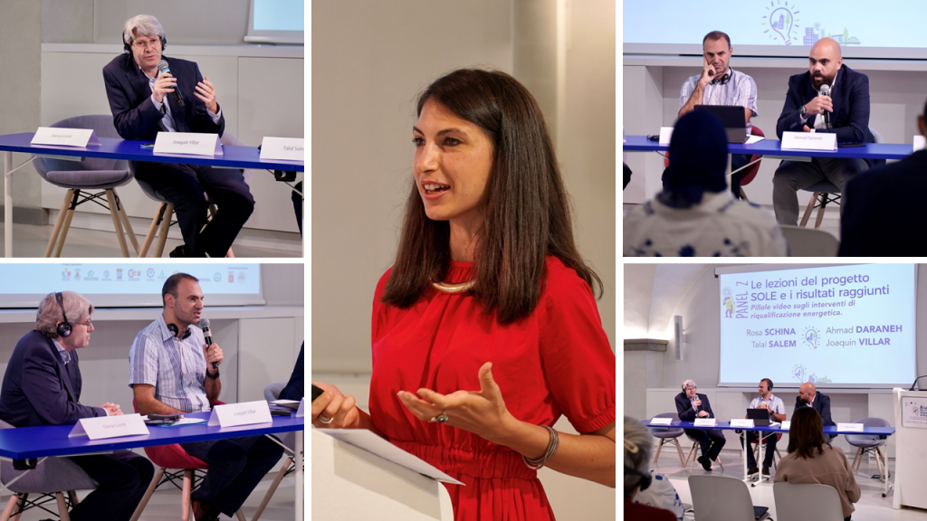 Project SOLE's outputs’ indicators, main results achieved and key lessons were then presented by project manager Rosa Schina from Anci Toscana, in a panel discussion with Ahmad Daraneh from RSS, Talal Salem from the Municipality of Jounieh and Joaquin Villar from the Andalusian Energy Agency (AEE): a series of videos on the project's most successful energy requalification interventions was then shown to the public and commented by the speakers.