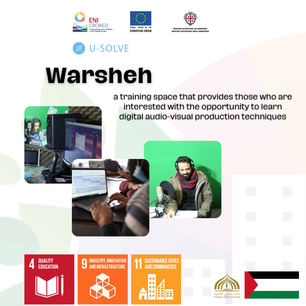 - Warsheh is a Training space that provides those who are interested with the opportunity to learn digital audio-visual production techniques and develop the skills of those wishing to specialize in modern technologies; through applied practical training and testing professional conditions and challenges in a practical way, the applicants are more prepared to compete in hands-on future opportunities.